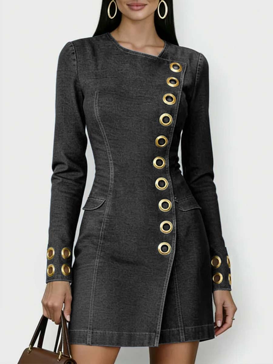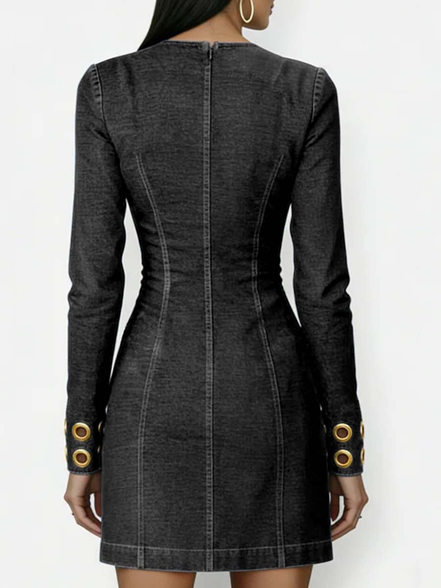 Women’s Casual Round Neck Long Sleeve Slim Fit Denim Dress